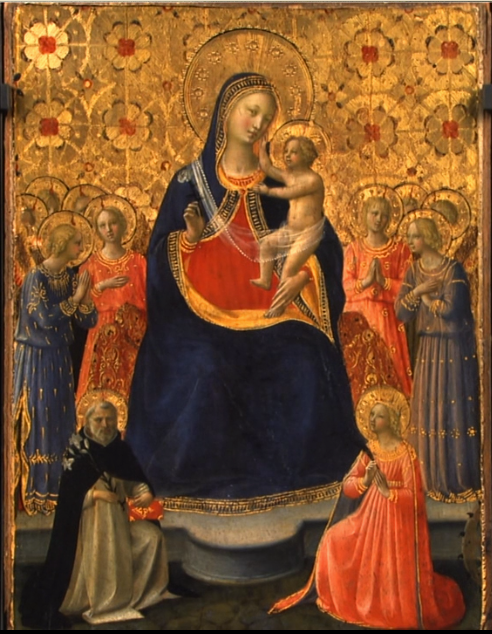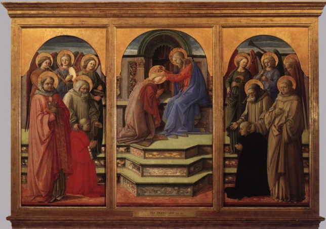 这描述的受人敬仰的玛利亚成为天国的女王,由耶稣为她戴上冠冕的场面,叫《圣母戴冠》。