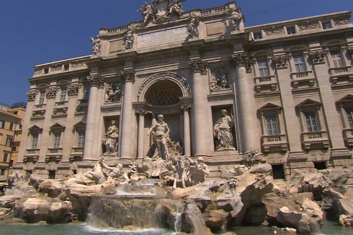 到罗马旅游的人都会造访这里-特莱维喷泉-由神话中的诸神守护着的喷泉。由教皇请巴洛克时期的建筑大师精心打造。