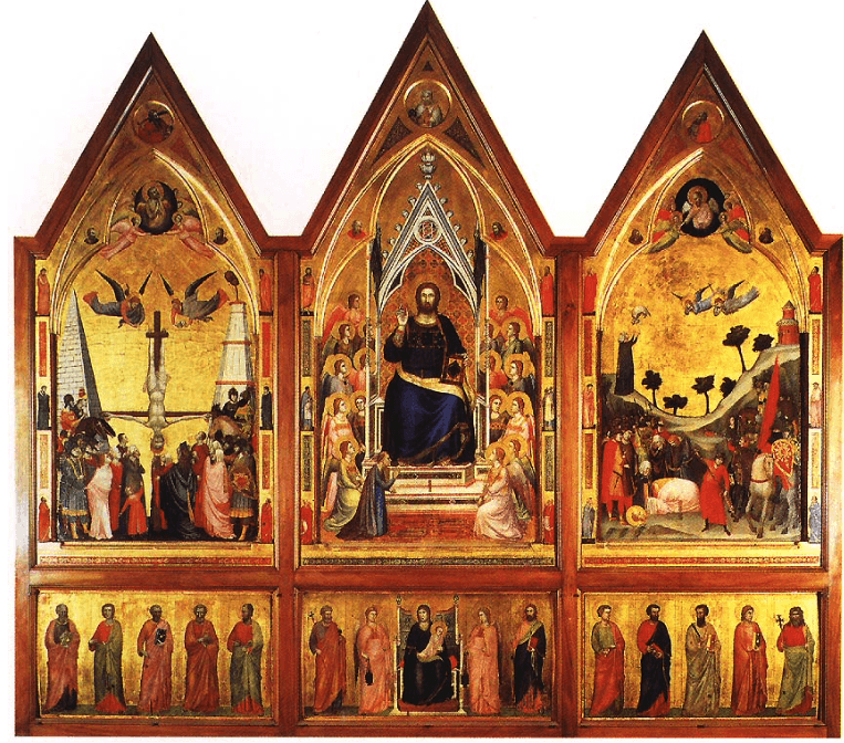 这是被当成文艺复兴时期先驱的十四世纪前半期的画家乔托所画的《史特芳尼斯基祭坛画》。