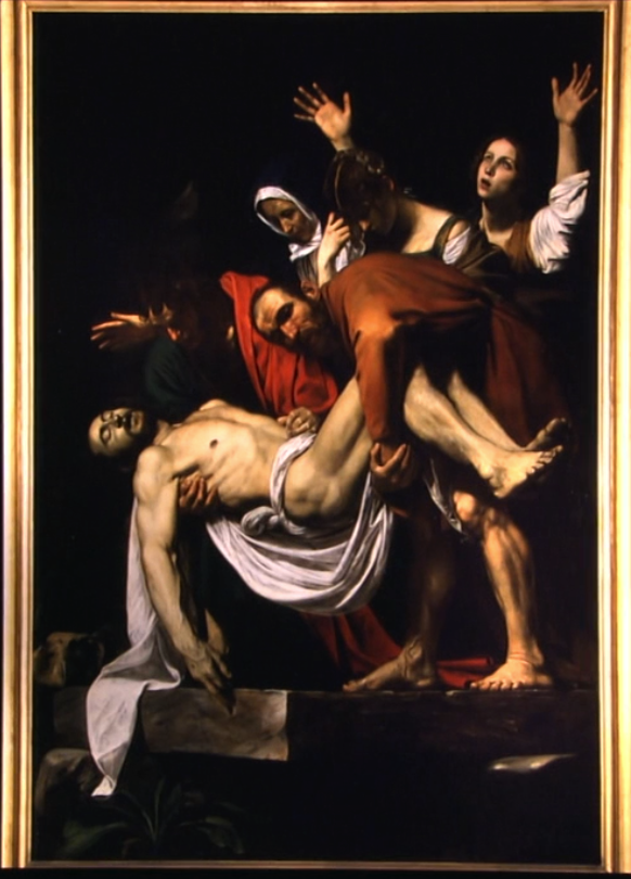 他用戏剧化的方式表现出埋葬耶稣的场面,充满了丰富的临场感。