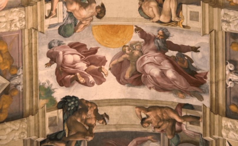 西斯廷礼拜堂的天花板上,画满了神创造天地的壮丽故事。