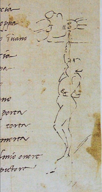 这是留存下来的执笔时的素描,从这不自然的姿态可以看出,绘制时有多辛苦。
