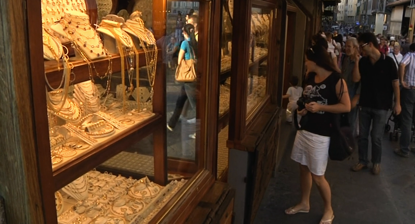 据说十六世纪时,桥上就有成排的店铺,经营着与贵金属有关的物品。