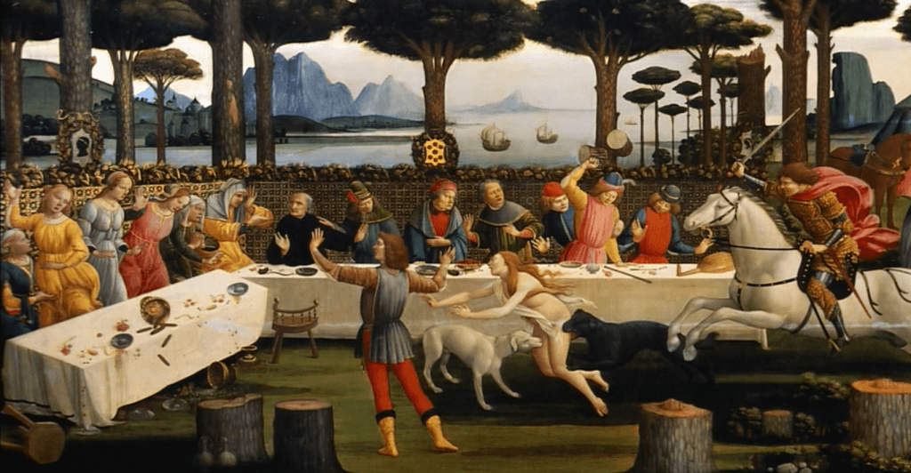 有个叫纳斯塔基奥的贵族知道了之后,就选在周五于该处举办宴会,向宾客中一位心仪的女子求爱。