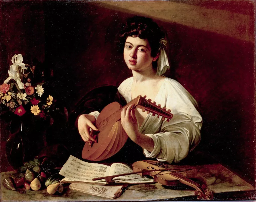 这是卡拉瓦乔早期的杰作《弹奏鲁特琴的人》。