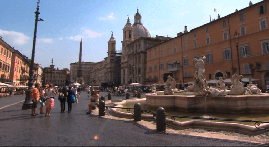 这是位于罗马中心的纳沃纳广场,许多人聚集于此,据说卡拉瓦乔就是这里出售自己的画作。