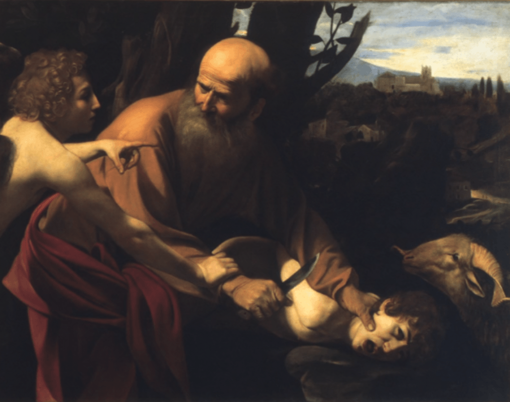 描述的是犹太族长亚伯拉罕正要将自己的儿子艾萨克献给神当祭品的那一刻。