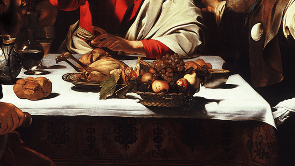 《基督在以马忤斯的晚餐》,描绘了弟子们和复活的耶稣基督一起用餐。