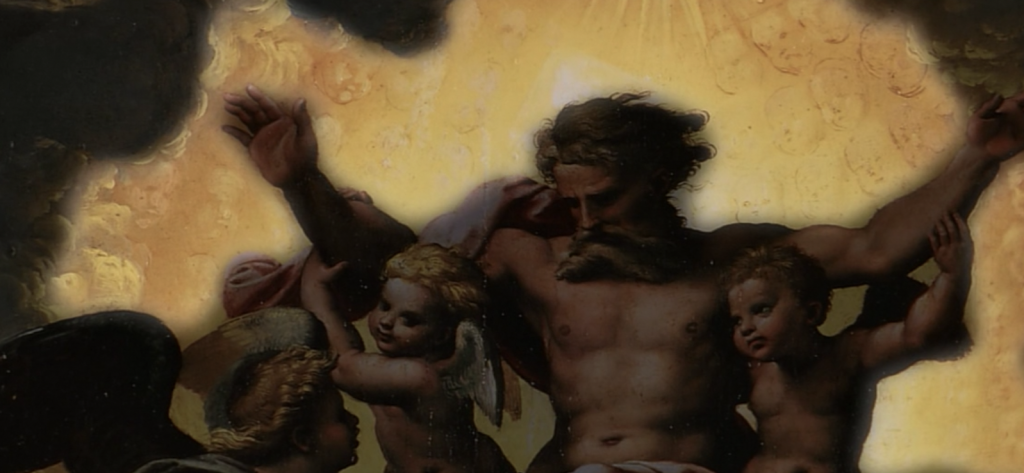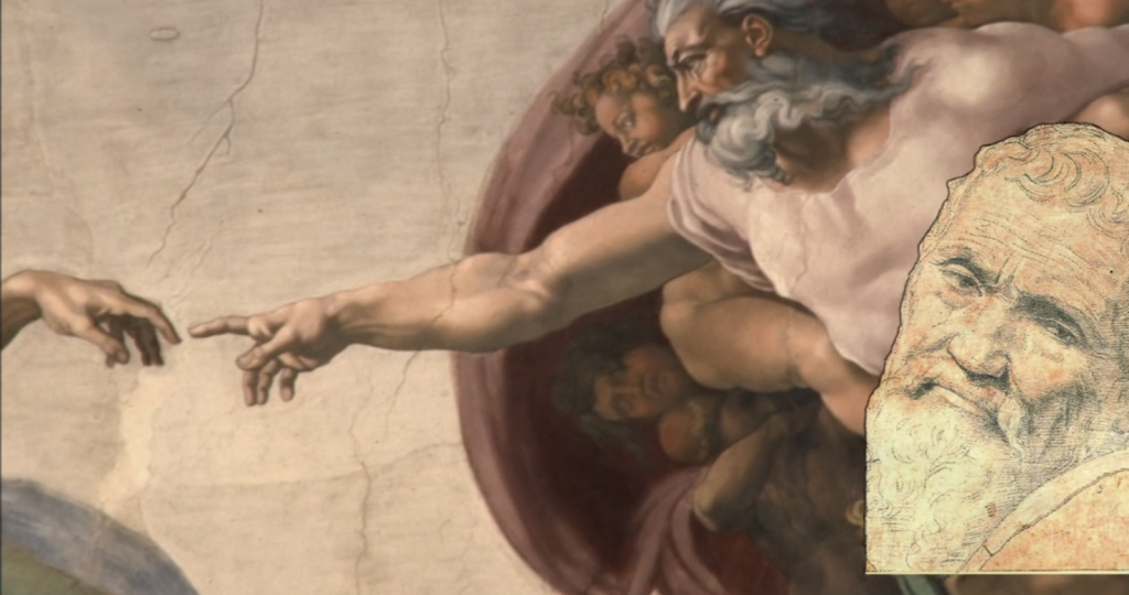 他也画出了被神圣的光芒所笼罩的神的身体,超越了米开朗基罗写实的骨骼描绘。