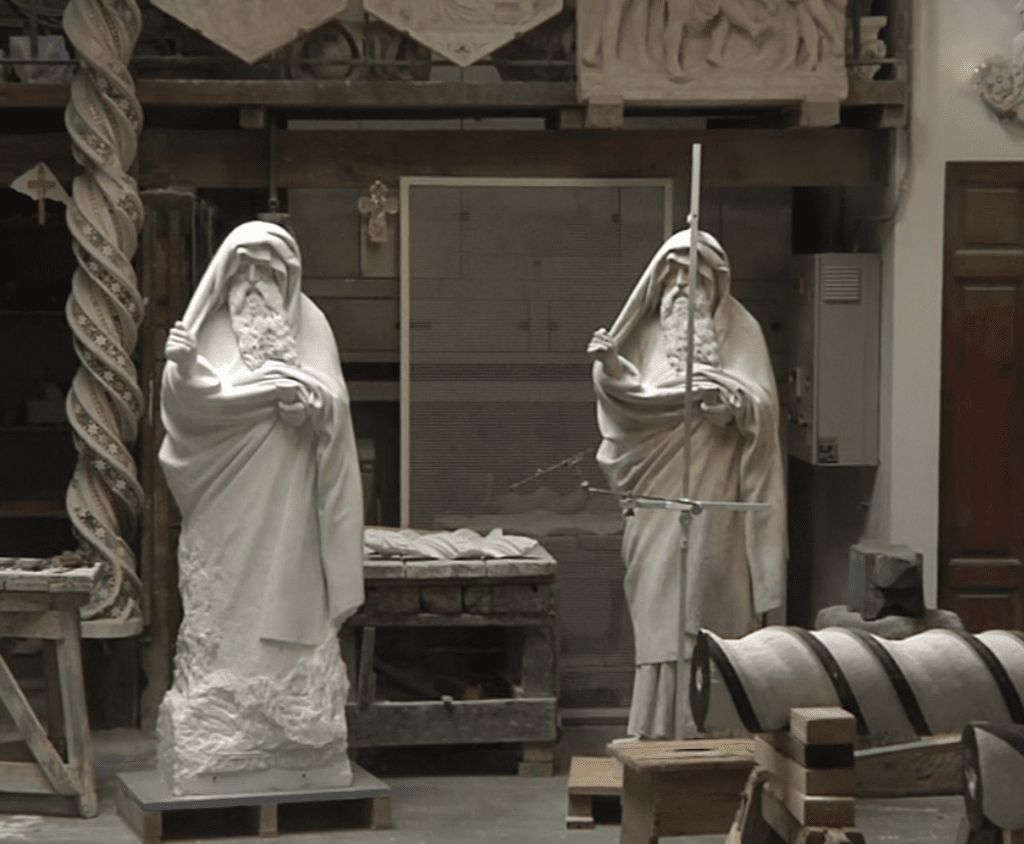 拉斐尔可以近距离地仔细观察他是如何制作这尊雕像的。