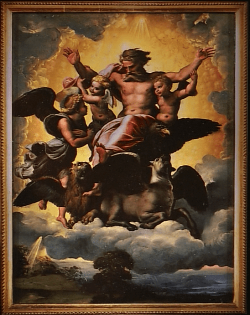 拉斐尔用了人在空中漂浮这种古老的手法,而当时已经没有人使用这种手法。