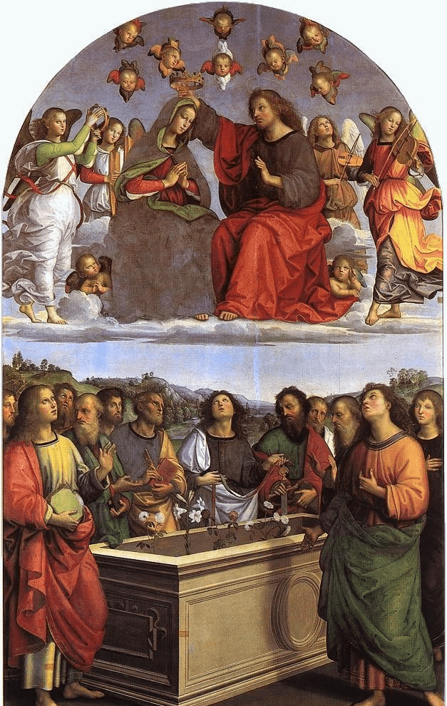 这拉斐尔在二十岁时画的《圣母戴冠》。