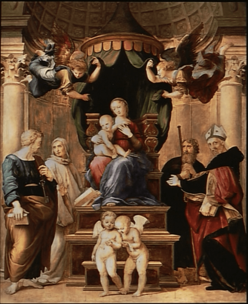 因为教皇利欧十世是美第奇家族的人,所以佛罗伦萨也留下了拉斐尔在这个时期创作的许多画作。