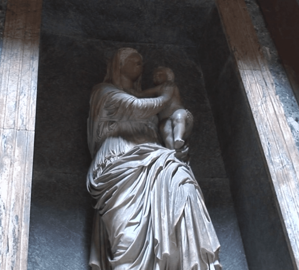 他的坟墓与他圣母画家的封号很匹配,上面放了圣母子雕像,他的棺木就安置在下方。