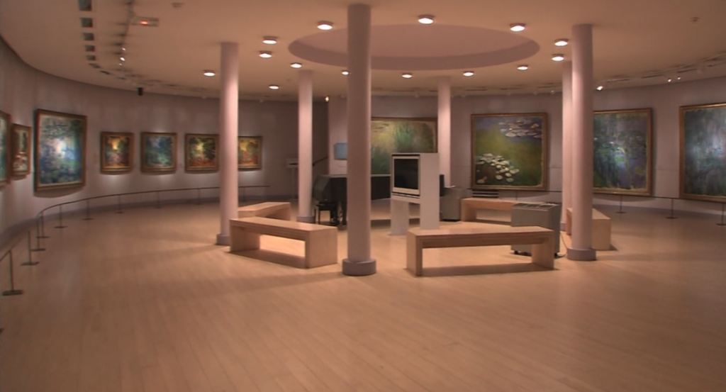 在马蒙丹美术馆的地下楼层,有一处宽阔的空间,名叫睡莲厅。其实莫奈一共留下了二百五十多幅以睡莲池为主题的作品,马蒙丹美术馆里展示了其中的五十幅。