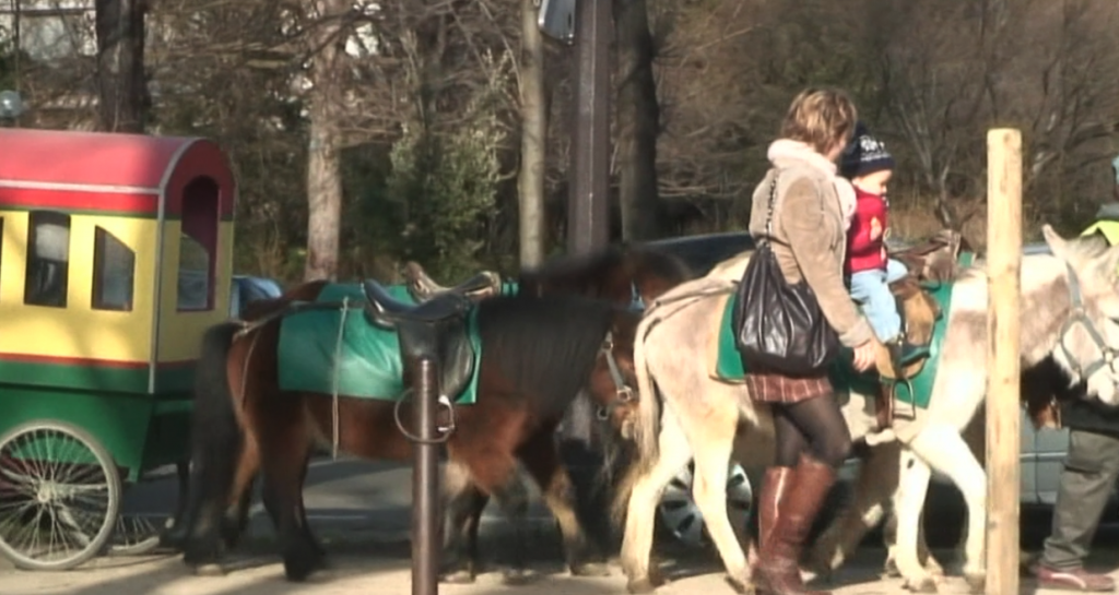 每逢周日,有很多人会带着家人来到这座公园。在假日,还有这样的活动,它是手动式的旋转木马。