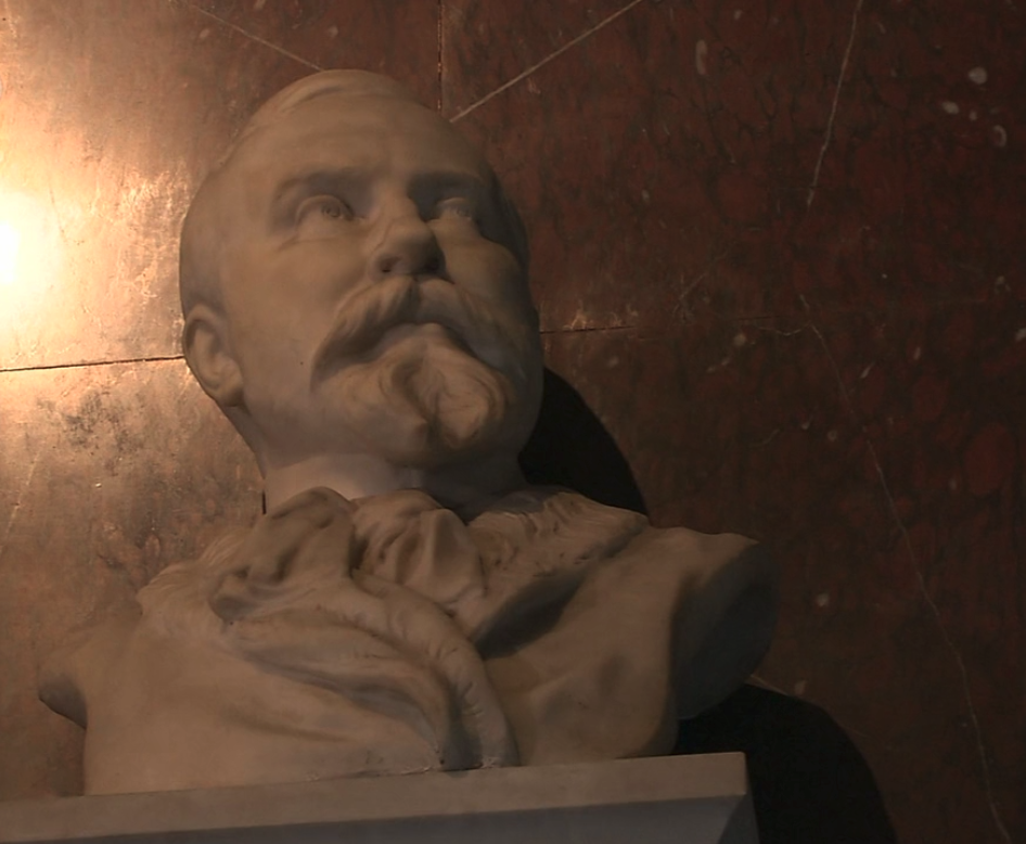 玄关处的天花板很高,在这里迎接访客的塑像,是这家美术馆的创始人,他就是从克勒曼公爵手上