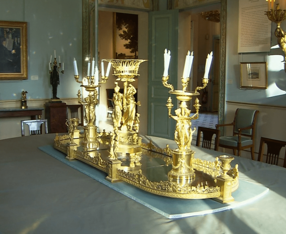 位于沙龙中央的,是一座十九世纪的珍贵时钟,它是为了赞扬拿破仑而制造的。