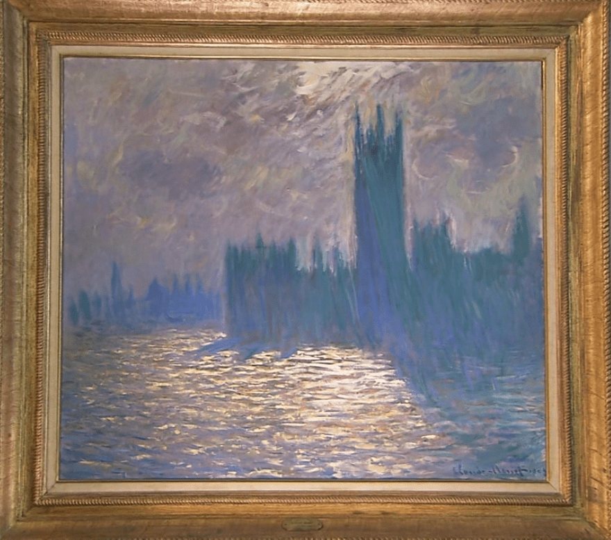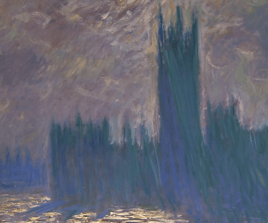 莫奈从五十九岁开始造访伦敦,在那里待了三年。他不断地画着矗立在泰晤士河畔的国会议事厅。