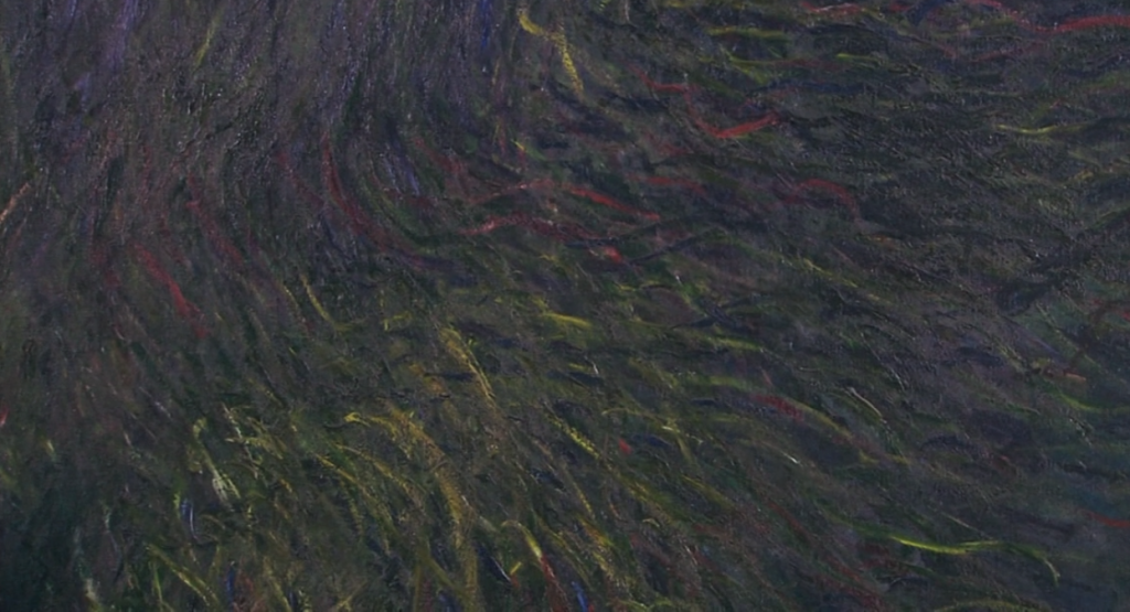 在这幅画,中莫奈全神贯注地描绘了水中的水草。
