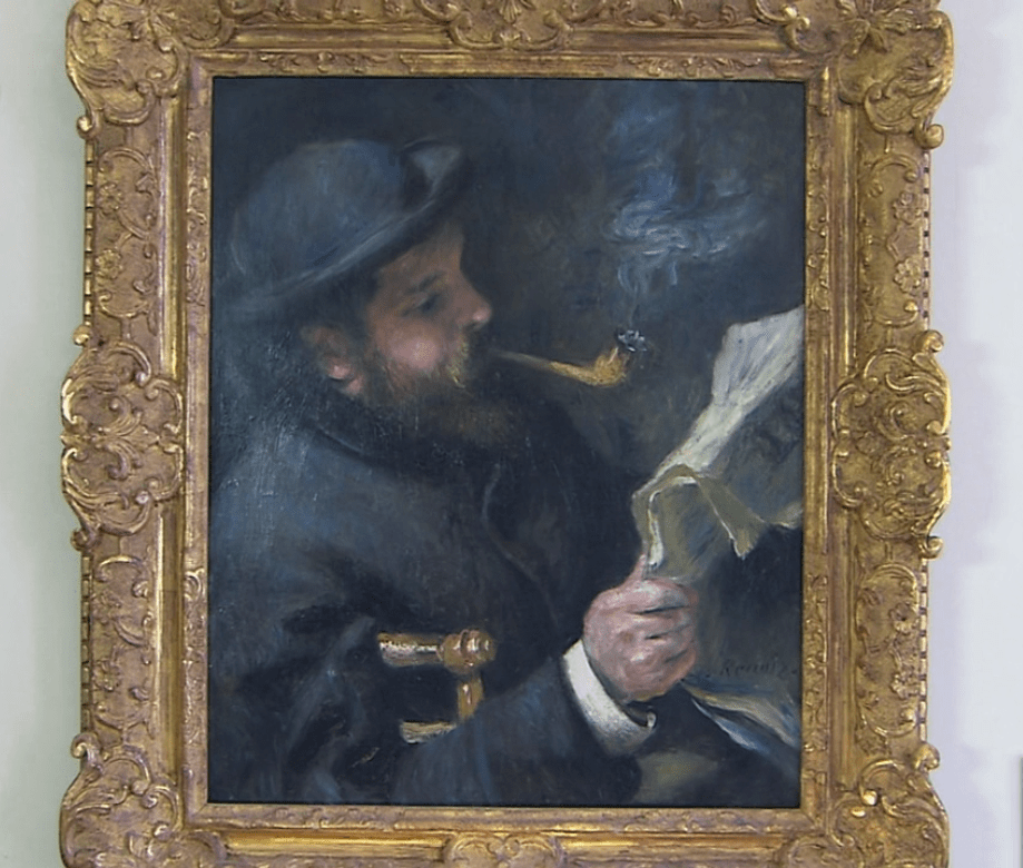 雷诺阿使用丰富的色彩画下了许多人物的肖像,其中也有以莫奈为模特的作品《克劳德莫奈读报》。