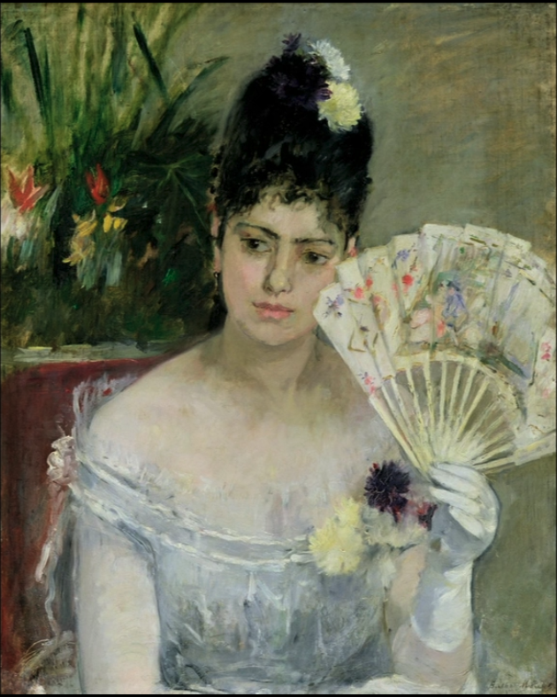 十九世纪,舞会对巴黎的中产阶级女性而言,可谓是华丽的社交场所。印象派的画家们很喜欢把非常时尚的女性当成题材。然而身为女性,莫里索无法像男画家那样,晚上随心所欲地到街上去作画。莫里索只能请模特到自己的家里来,她也因此创作了许多深入内心层面的作品。