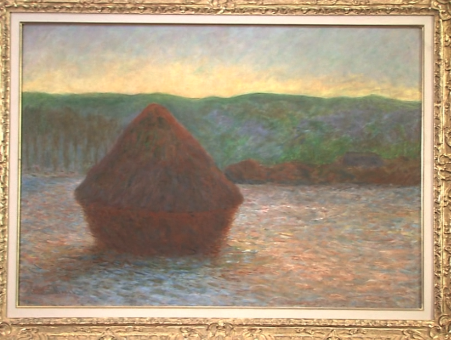 这是莫奈五十岁时创作的名画《麦秆堆》,它是二十幅连作的其中一幅。