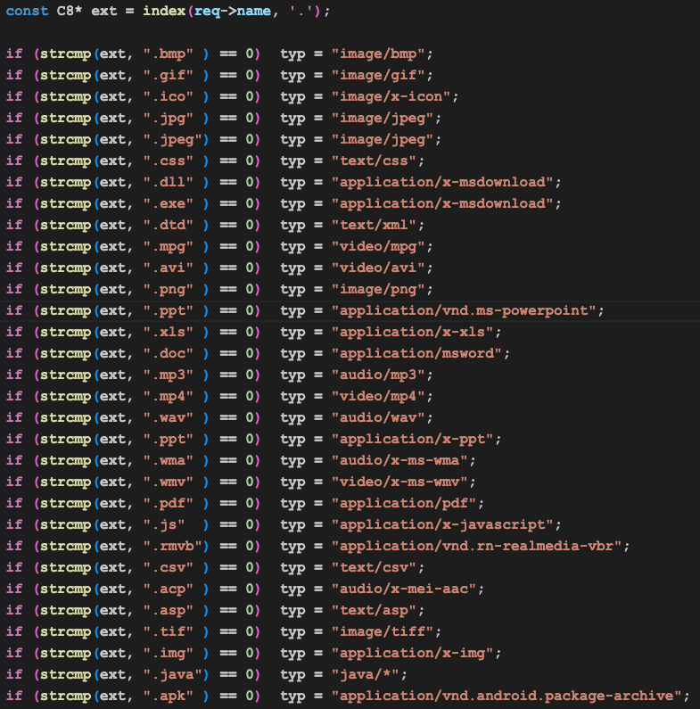 比如客户端请求xxx.css,我们就会返回text/css,如果客户端请求xxx.js,我们就会返回application/x-javascript。