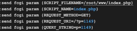 phpfpm收到这些信息后,就会打开并解释/root/www/index.php文件,并把参数p=1149传递给他。