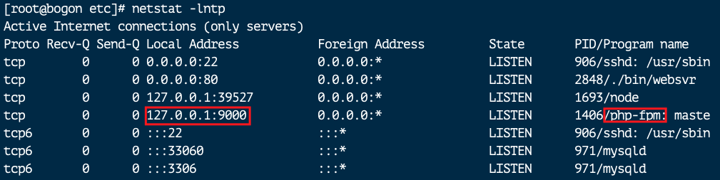 phpfpm进程的侦听端口是9000: