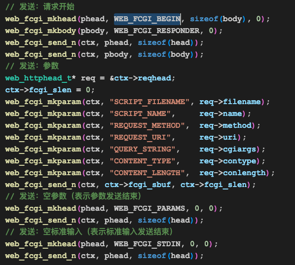 其中最核心的过程是第二个,即发送FCGI参数。