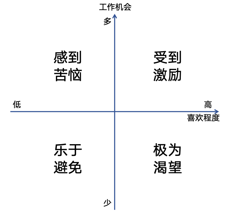 我们可以按照应聘者喜欢(期待)程度和公司提供相应工作机会的多少来判断动力适配性。