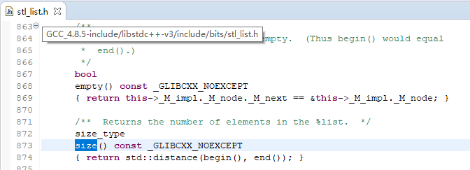 list的size()函数实现位于:include/bits/stl_list.h