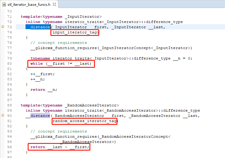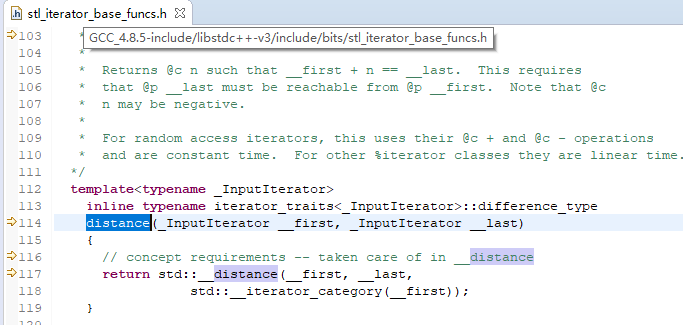std::distance()的实现位于include/bits/stl_iterator_base_funcs.h: