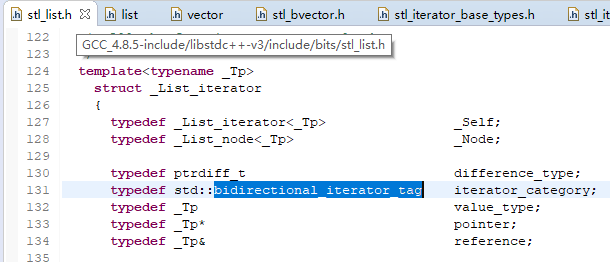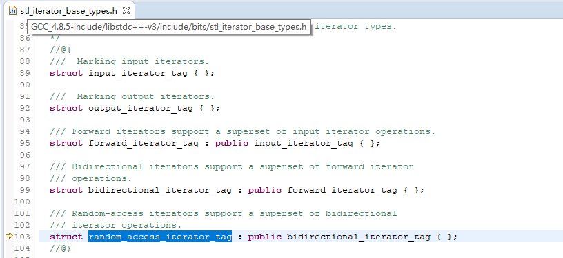 这几个iterator_tag的定义位于include/bits/stl_iterator_base_types.h: