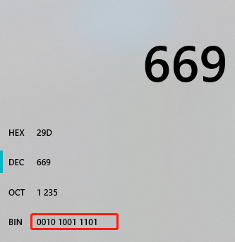 669的二进制表示是这样的: