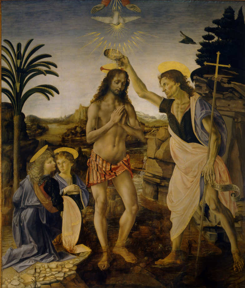这幅画叫基督受洗,是达芬奇的老师布罗茨基画的。