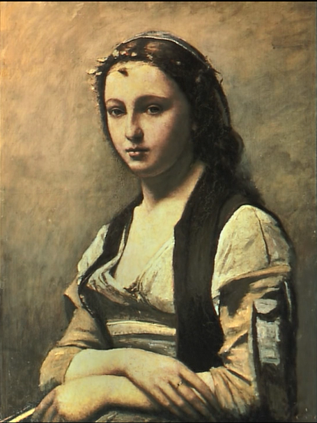 还有19世纪法国风景画画家科罗难得画的一幅年轻女子肖像画: