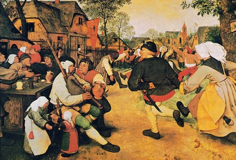这是与农民的婚礼同一时期的另一幅以农民为题材的画,农民的舞蹈。