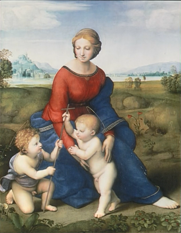 这是被誉为哈布斯堡家族至宝的绿野的圣母子,是拉斐尔大师的作品: