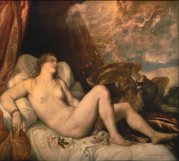 提香与吉奥乔尼并称打造文艺复兴黄金时代的大师。这是他的代表作,达娜厄公主。描绘的是希腊神话中的场景,宙斯画作黄金雨与达娜厄公主发生关系。