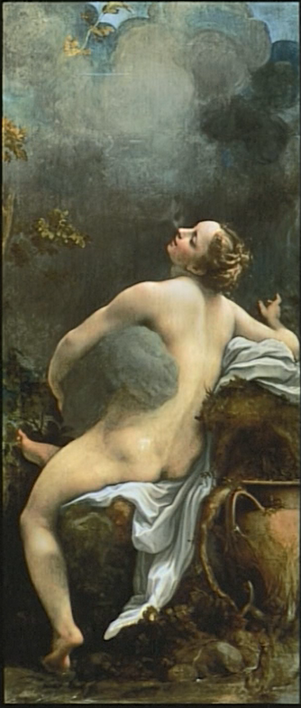 这是16世纪活跃于意大利帕尔马地区的大师柯勒乔的作品,朱庇特与伊娥。讲述的是罗马神话中的天神朱庇特为了不让妻子发现他偷情的事情,用云雾遮挡住自己与伊娥相会的情形。