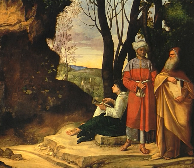 16世纪文艺复兴时期的吉奥乔尼,虽然被称为谜一般的画家,但他的作品却得到了很高的评价。这幅画的主题也充满了谜团,作者的意图也不是很明确。有人猜测,这是用中年、青年、老年来代表人一生的三个阶段。