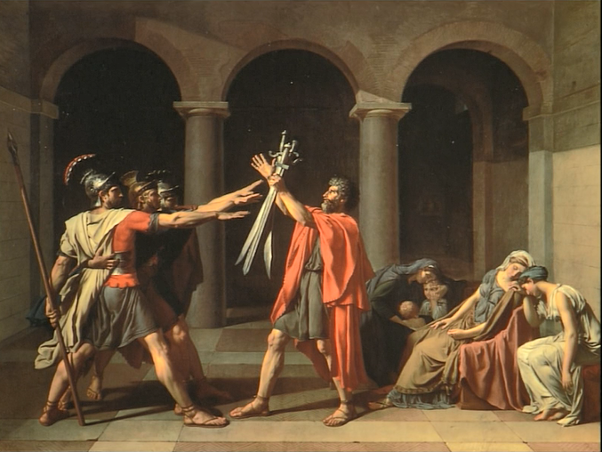 大卫在巴士底狱被攻占前夕画这幅画,叫贺拉斯兄弟的誓言。这幅画以古罗马传说为架构,讲述了为了保护国家而甘愿牺牲的贺拉斯三兄弟。这幅画的主题抓住了渴望改革的人民的心,被认为是推动了革命的一幅画。