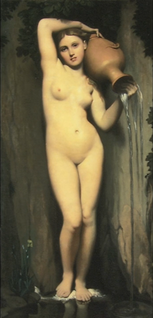 女子表情优美,表示他受到了文艺复兴大师拉斐尔的影响。水流倾泻而下,除了代表泉水之外,也象征着无穷无尽的生命。重心放在一只脚的姿势,也是古典艺术中的典型。