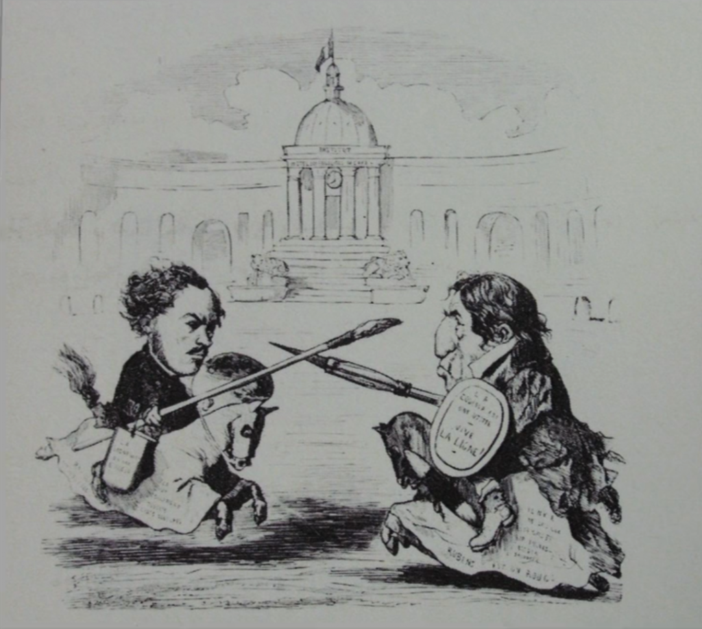 他们俩的论战成了热门话题,甚至报纸上还有这幅用画笔决斗的讽刺画:
