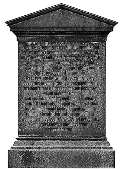 而威斯敏斯特教堂地下室里,英国圣公会主教的墓碑上写着的这样一段话,也表明了同样的道理: