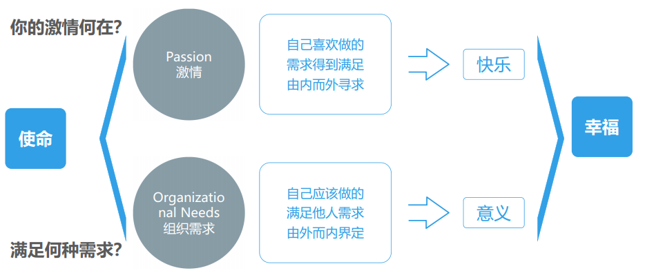 即:结合组织的需求和个人的激情,找到个人的使命。