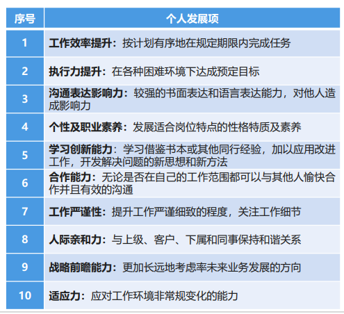 在职业生涯发展的前期,我们更多地是在知识、技能和经验方面进行发展。但如果要在职场上走的更远,我们就要在角色认知和个性伸缩方面进行着力发展。另外身体塑造也是需要重点关注的,身体是革命的本钱,健康最重要。